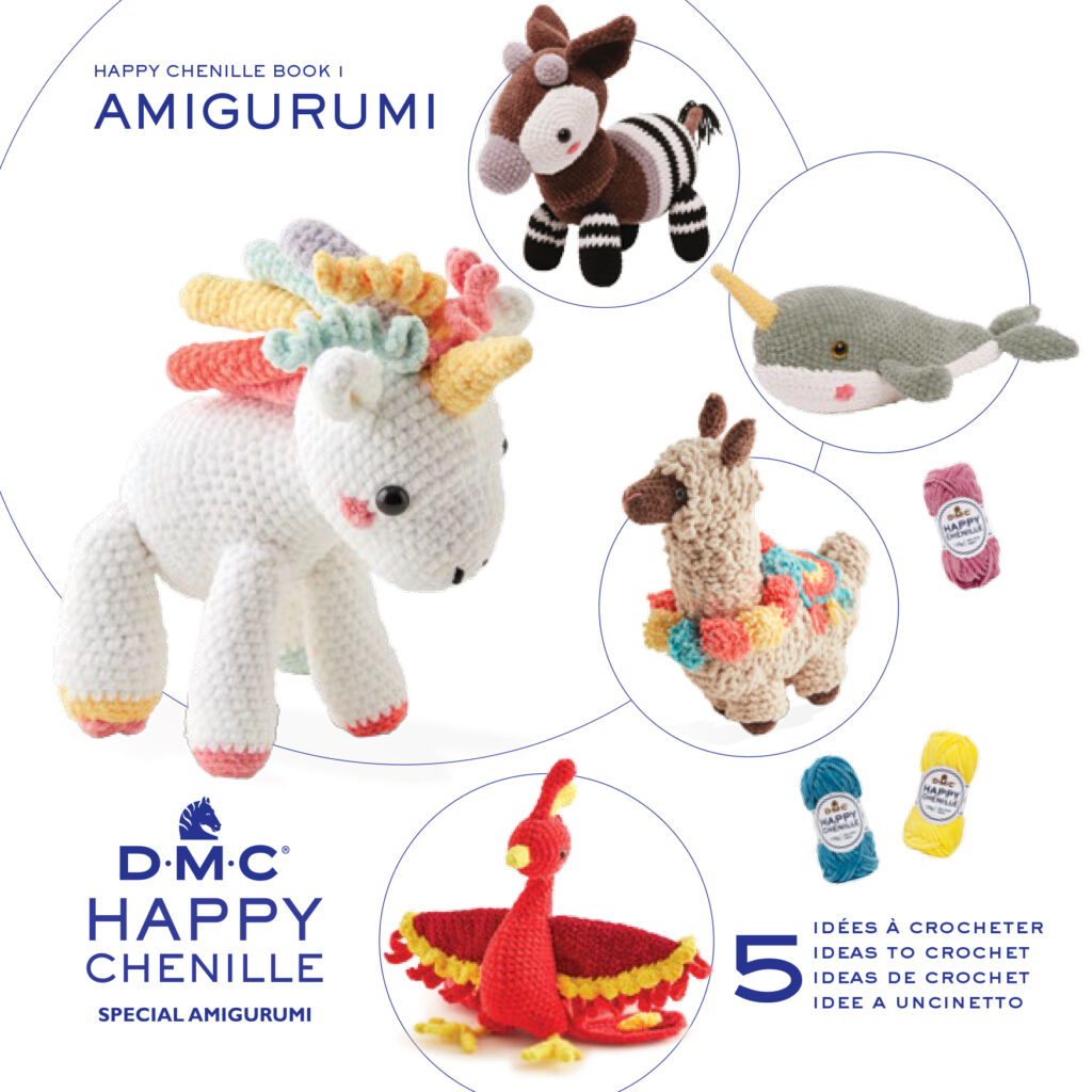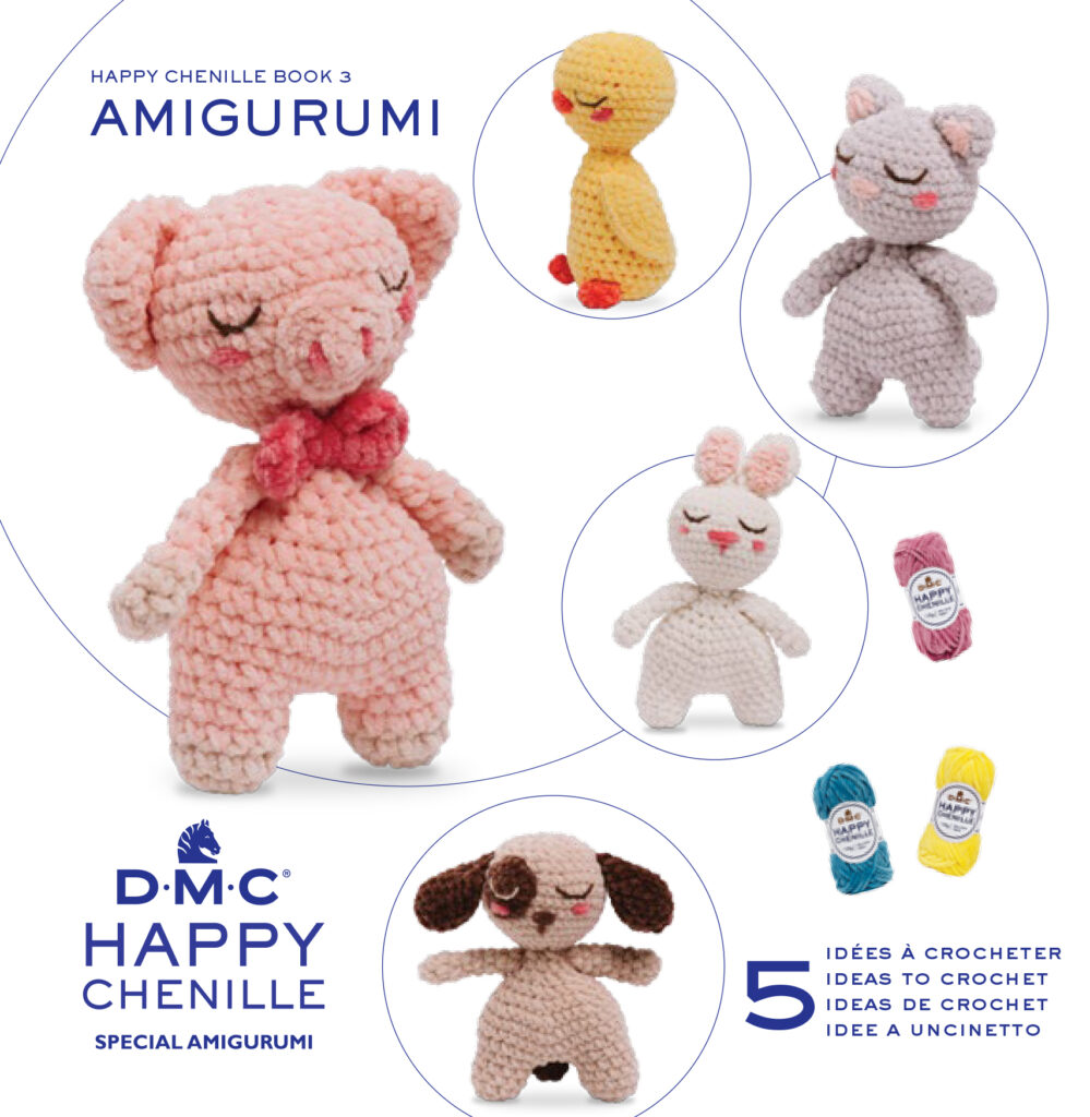 Kan bli annat än glad av dessa små söta nystan! Garnet heter Happy Chenille från DMC. Mönsterhäften på söta amigurumis finns också.
