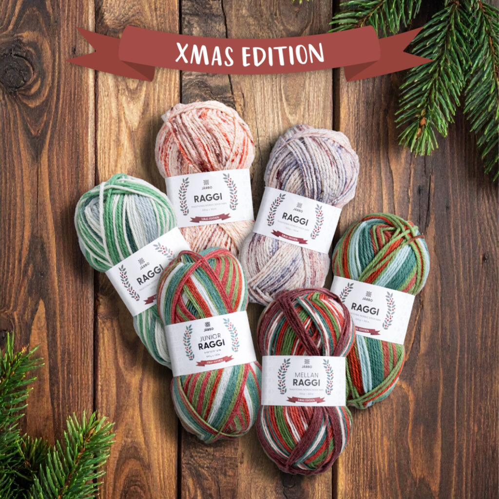 JÀrbo Xmas edition finns nu i butiken. Sockgarner i olika grovlekar och i juliga fÀrger med extra blingbling.
