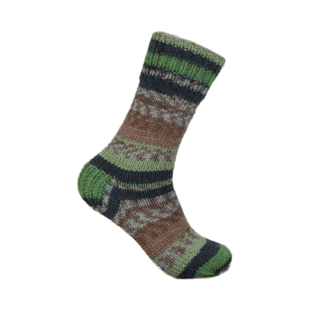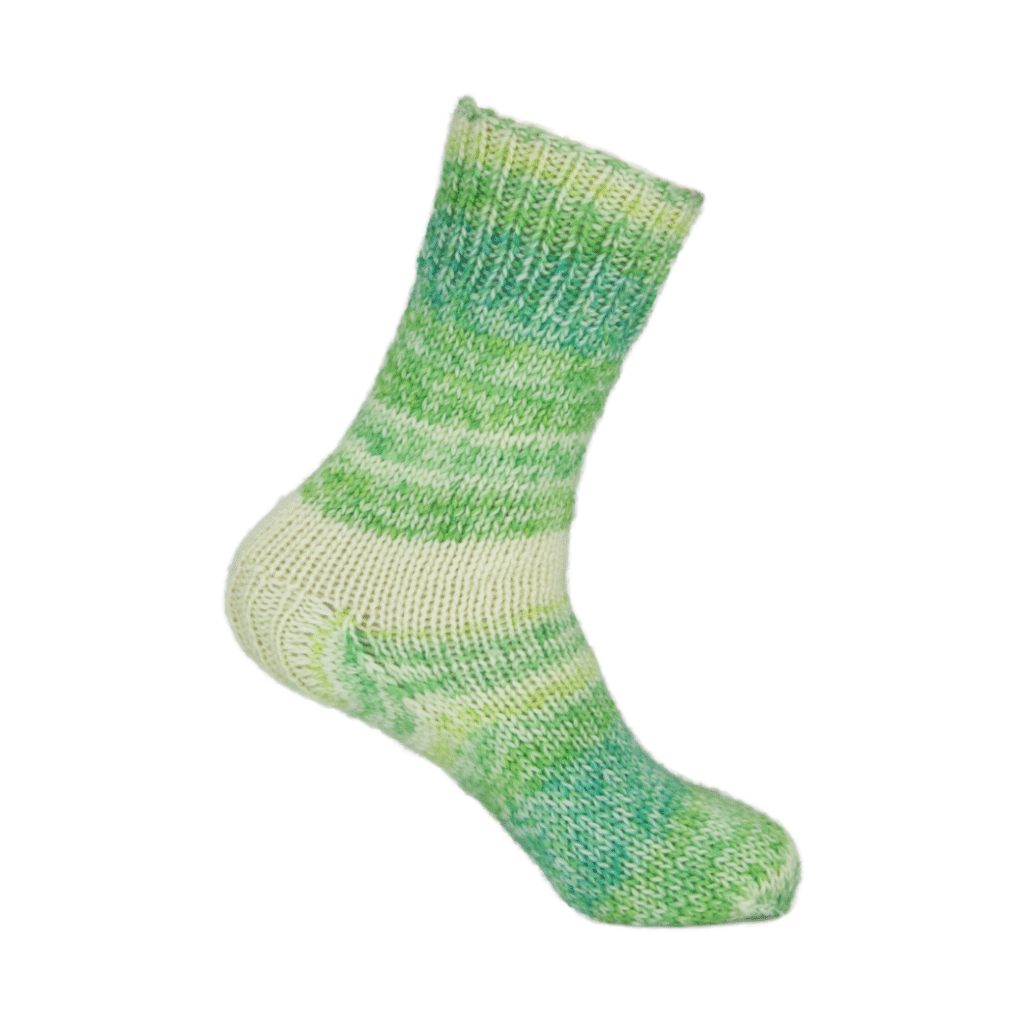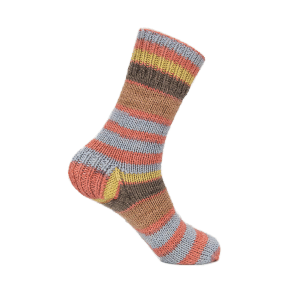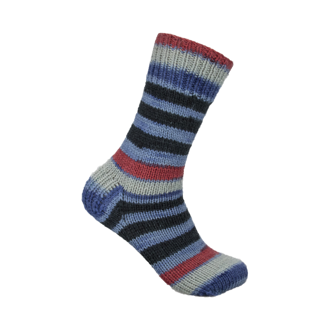 sockgarnet som ger den precis mellangrova sockan. Ett nystan rÀcker till ett par sockor upp till storlek 41. (15-16 cm skaft)