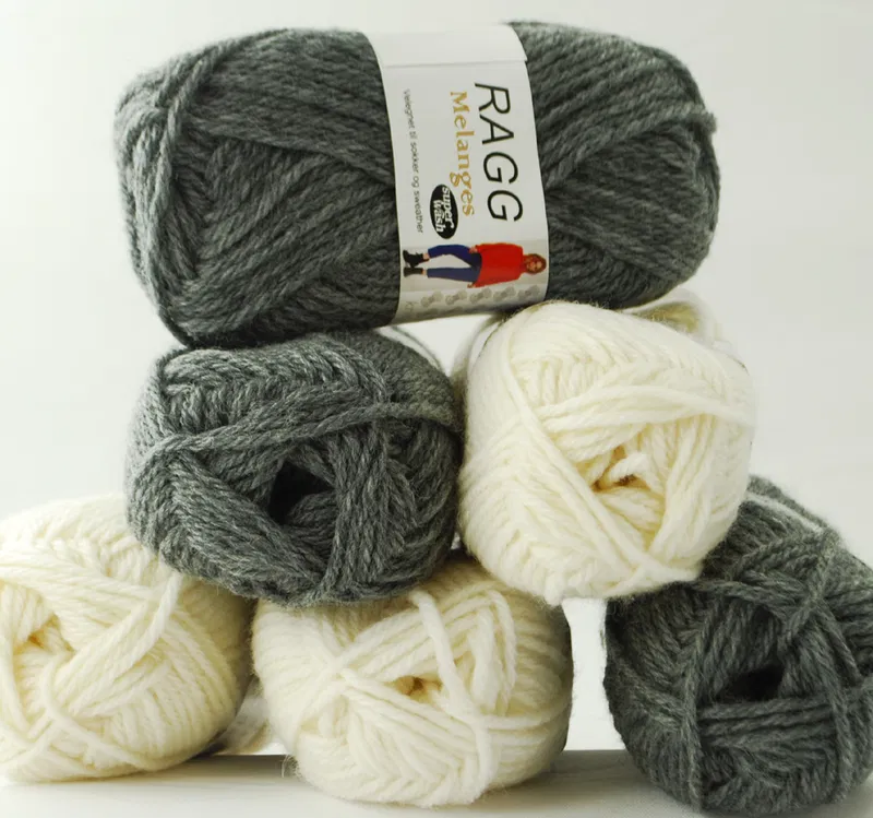 Ragg frÄn Hjertegarn Àr vÄrt enfÀrgade sockgarn till tjocksockorna. Den ligger pÄ 50-grams nystan vilket passar vÀldigt bra dÄ det gÄr Ät 150 gram till de flesta vuxenstorlekarna.